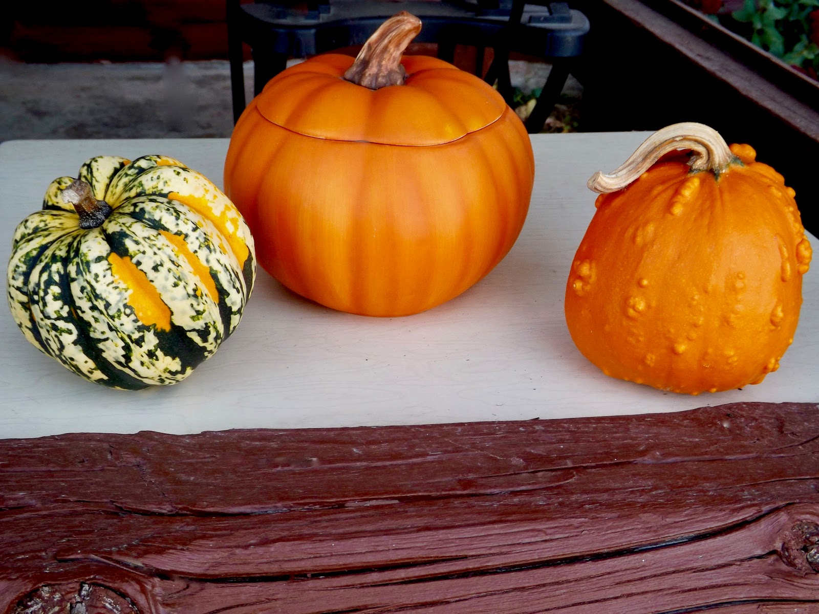 Two more projects have been completed to my satisfaction. The fallen pine cones that I had picked up in a neighbor's yard and then baked to melt the sap were used. There are none left. I have had this project in mind for quite a while and sent the Mister to the tractor store to buy a ball of jute or hemp. He found jute. It was messy but worked just fine. A tricky balancing act was then accomplished with the trial and error method and I have a rustic mobile. The leftover ones were attached to an old metal ivy wreath along with the three teasels that I had previously dried. Since there were no large lumpy pumpkins at the orchard this year, I bought just one gourd and a little lumpy orange pumpkin. The pumpkin in the middle is ceramic. It was my mother's, a gift to her when when she was in the extended care facility. Soooooooo, now I am into the seasonal mood and all is fine.