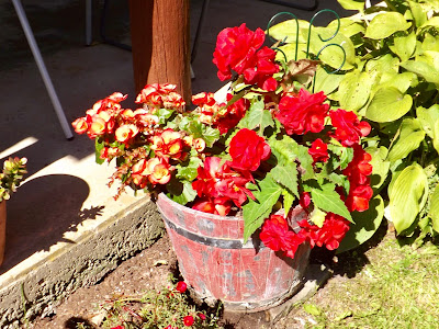 Close to frost last evening. I'll cut some Seedum to have them dry out in an old fruit basket and then start emptying the flower pots and beds. One more look at this year's colorful porch surrounds. After doing this, I'll start dehydrating some of the apples we brought home from the orchard. Maybe - maybe I'll bake an apple "something" as well. Sun is out but it is deceiving - not warm. 42° in the shade on the thermometer.