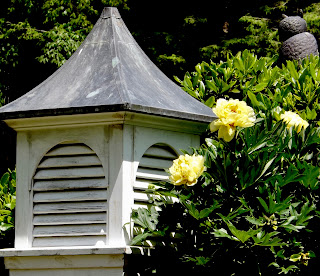 I thought I wouldn't go for a buggy ride today but it is warm and enticed me to get off my chair and take a short cruise. I noticed a lot of the little Birdsfoot Trefoil clusters everywhere along the sides of all the roads I traveled. Each wildflower has its turn to bloom. I snatched a few for a tiny bouquet of the little yellows. And yes, I''m rooting more spearmint.