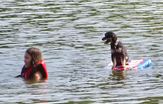 It was so good to see my daughter cooling off in the lake. Her son and his partner have just packed it in from boat fishing. Fish were hiding down deep in the cool water. She has always loved swimming and needed this relaxing opportunity. The first picture shows her standing by the "woodpecker tree" and the last one shows that tree still living at the lakefront. The woodpeckers have moved to destroy James and other trees up behind the cabin.